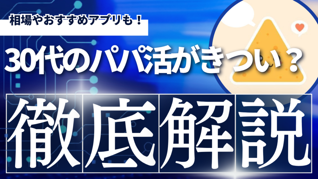 「30代になって最近、パパ活の条件交渉がうまくいかない…」「ドタキャンされたり、相場以下の額を提示されたりして、精神的にもう限界…」という疑問や悩みをお持ちではないでしょうか? 20代の頃とは違う男性の反応や、質の低いパパとのやり取りに疲れ果て... -