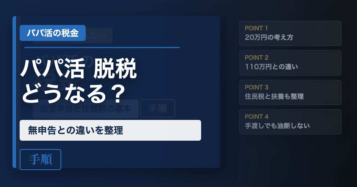 「パパ活で申告していないと脱税になるの?」「無申告と申告漏れは同じなの?」「税務署や加算税の話が出てきて不安…」と感じていませんか。