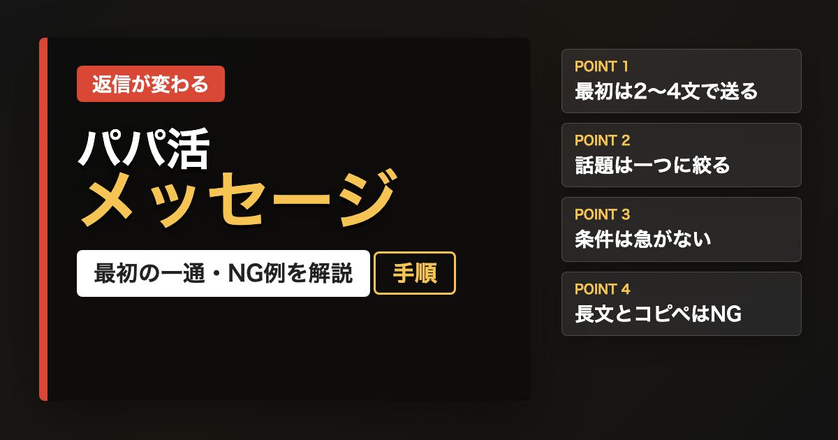 この記事では、パパ活メッセージの基本、最初の一通のコツ、会話の続け方、使いやすい例文、やってはいけないNG例までまとめて解説します。
