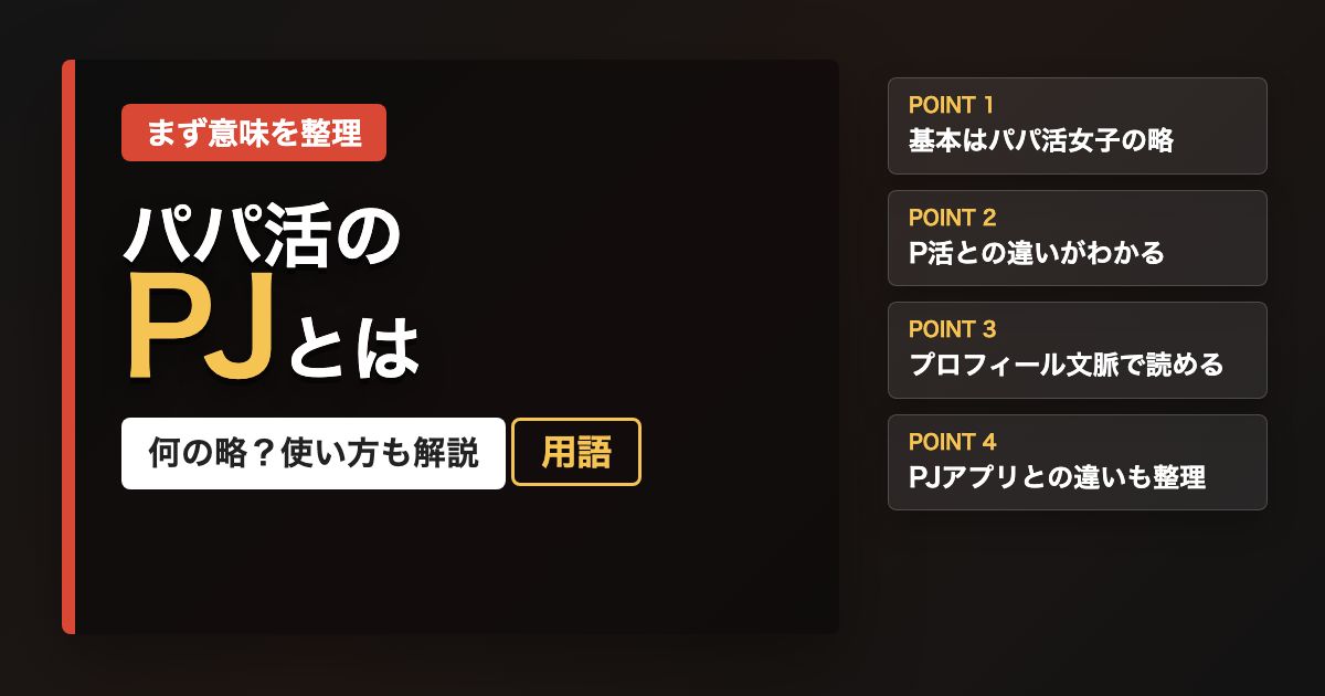 つまり、パパ活文脈での「PJ」は人を指す言葉です。サービス名や活動全体を指す言葉ではない、という点を最初に押さえておくとかなり読みやすくなります。