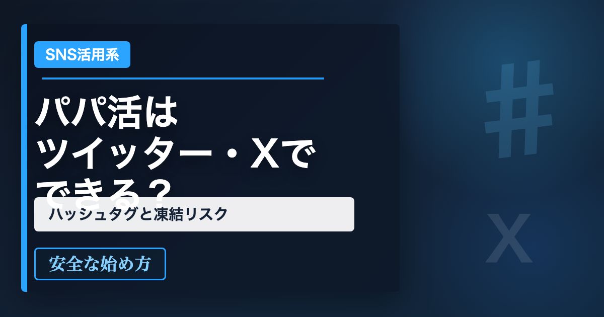 この記事では、ツイッター・Xでパパ活が行われる理由、よく使われるハッシュタグ、凍結されやすい行動、ありがちなトラブル、安全に始める考え方までまとめて解説します。Xを使うか迷っている方は、ぜひ最後までご覧ください。