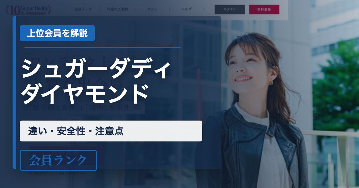 そんな疑問を持っている方のために、シュガーダディのダイヤモンド会員の意味、プレミアム会員との違い、男性のメリット、女性から見た安全性、注意点やトラブルになりやすいポイントをまとめました。